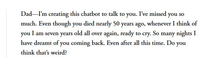 To ve svém nedávném pokusu ostatně udělal Jon Michael Varese, když zadal následující prompt, kterým “oživil svého otce”.